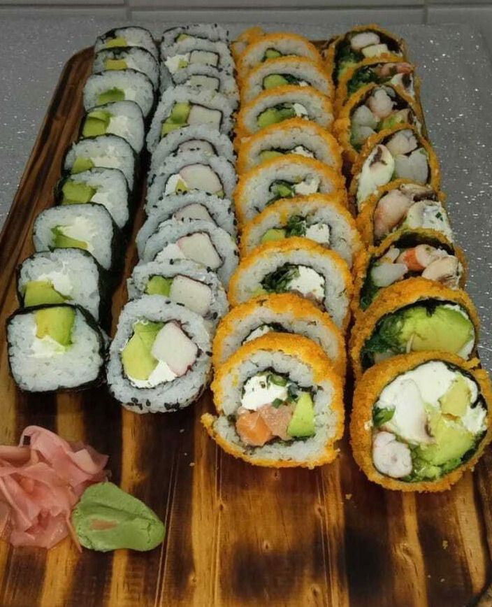 $2499010 california Salmón, queso crema y Cebollín 10 env palta Kanikama y queso crema 10 frito tempura de camarón, queso crema y cebollín 10 frito krispy con pollo y palta 10 hosomaki de kanikama y palta 10 futoKrispy vegetariano 10 California vegetariano 10 frito tempura Pollo y queso crema 10 frito krispy kanikama, queso crema y cebollín 10 Hosomaki salmón y palta